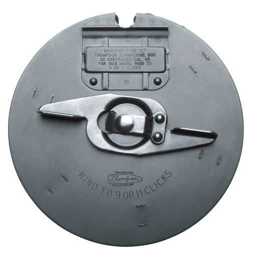 In stockCaliber: 45 ACP Capacity: 50rd Finish: Black Model: A1 Material: Steel Type: Drum Model Fit: Tommy Gun Brand Fit: Thompson Capacity: 50