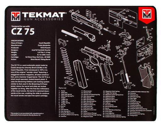 TekMat TEKR20CZ75 CZ 75 Ultra 20 Cleaning Mat Black/White Rubber 15"x20" CZ-75 Parts Diagram