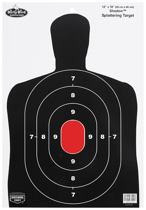 Birchwood Casey 35712 Dirty Bird BC-19 Silhouette Paper Hanging Pistol 12" x 18" Black/Gray/Red White Impact Splatter 100 Per Pkg
