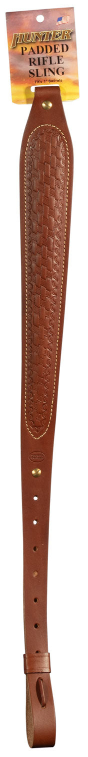 Hunter Company 027149 Cobra Sling made of Chestnut Tan Leather with Basket Weaver Pattern, Padded Design & 1" Swivels for Rifles