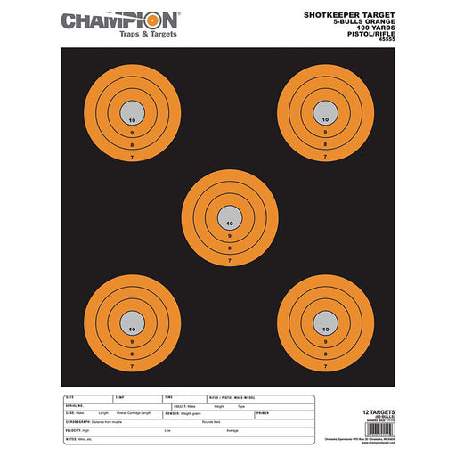 Champion Targets 45555 Shotkeeper 5" Bullseye Paper 100 yds Pistol/Rifle Large Black/Orange 12 PK