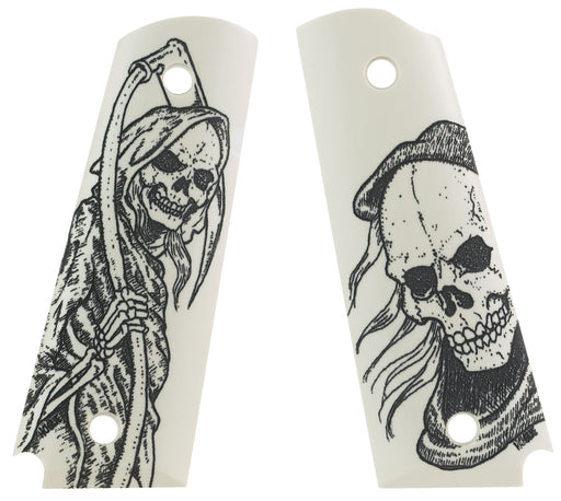 Hogue 45026 Scrimshaw Grip Ambi-Cut Ivory with Grim Reaper Polymer for 1911 Government