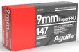 Aguila 1E097719 9mm Luger 147gr Full Metal Jacket Flat Point 50 Per Box/20 Case
