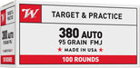 Winchester Ammo USA380VP USA 380ACP 95gr Full Metal Jacket Flat Nose 100 Per Box/5 Case