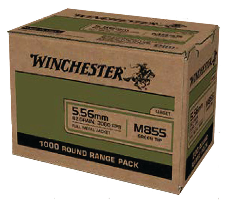 Winchester Ammo WM8551000 USA M855 Green Tip 5.56x45mmNATO 62gr Full Metal Jacket 1000 Per Box/1 Case *Sold By Case